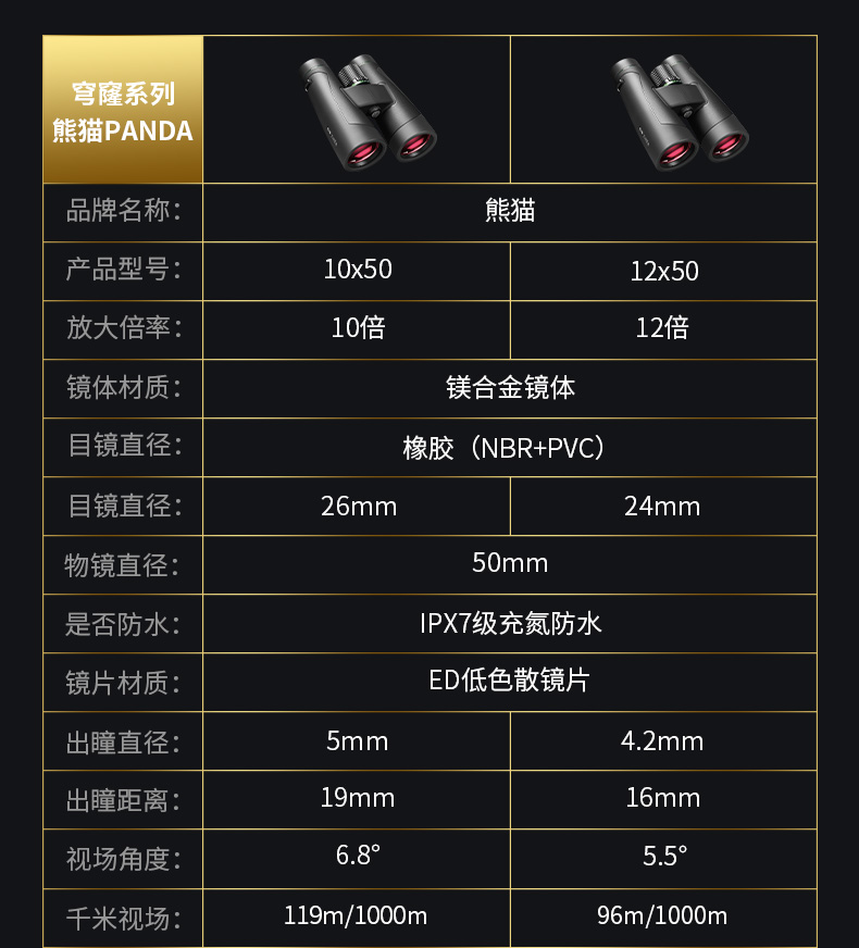 熊貓穹窿10/12X50APO